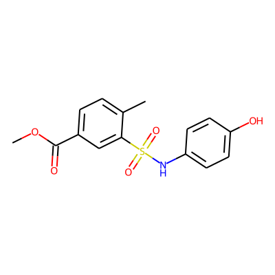 COC(=O)c1ccc(C)c(S(=O)(=O)Nc2ccc(O)cc2)c1| HBA: | 6 | RingCount: | 2 |