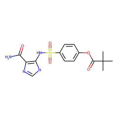 CC(C)(C)C(=O)Oc1ccc(S(=O)(=O)NC2=C(C(N)=O)N=C[N]2)cc1| HBA: | 9 | RingCount: | 2 |