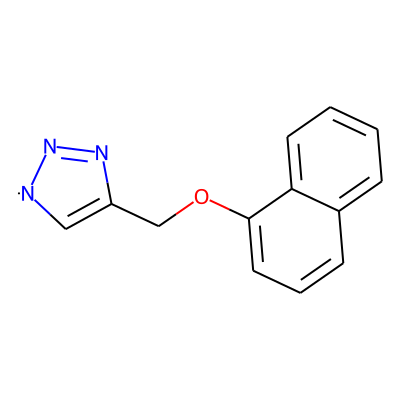 C1=C(COc2cccc3ccccc23)N=N[N]1| HBA: | 4 | RingCount: | 3 |