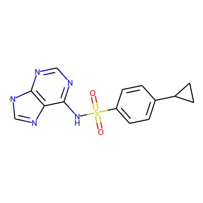 O=S(=O)(Nc1ncnc2c1N=C[N]2)c1ccc(C2CC2)cc1| HBA: | 7 | RingCount: | 4 |