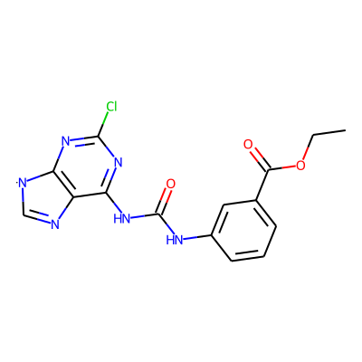 CCOC(=O)c1cccc(NC(=O)Nc2nc(Cl)nc3c2N=C[N]3)c1Sugarmoiety: