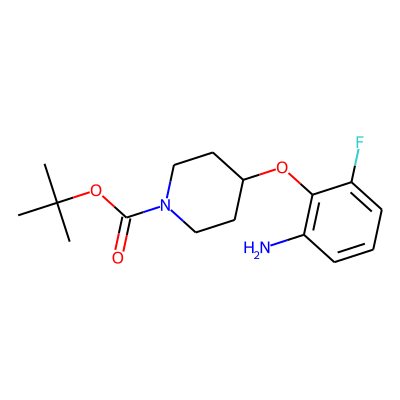CC(C)(C)OC(=O)N1CCC(Oc2c(N)cccc2F)CC1| HBA: | 5 | RingCount: | 2 |