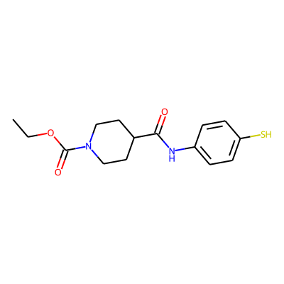 CCOC(=O)N1CCC(C(=O)Nc2ccc(S)cc2)CC1| HBA: | 5 | RingCount: | 2 |