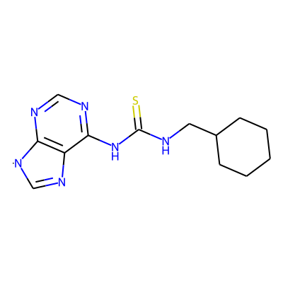 S=C(NCC1CCCCC1)Nc1ncnc2c1N=C[N]2| HBA: | 6 | RingCount: | 3 |