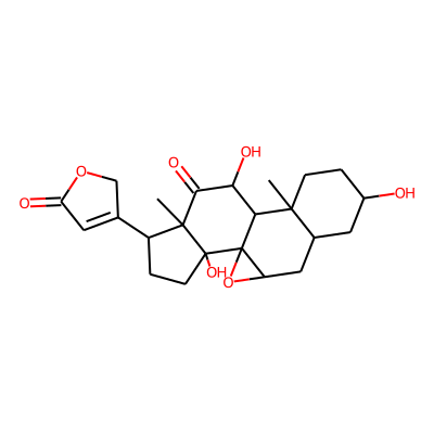 CC12CCC(O)CC1CC1OC13C2C(O)C(=O)C1(C)C(C2=CC(=O)OC2)CCC13O| HBA: | 7 | RingCount: | 6 |