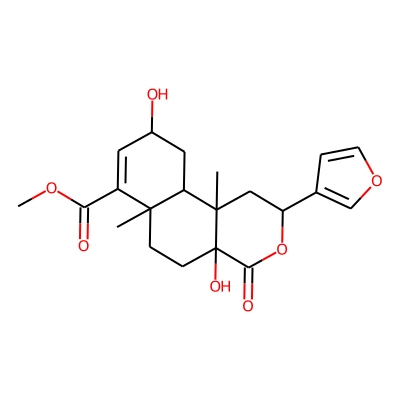 COC(=O)C1=CC(O)CC2C1(C)CCC1(O)C(=O)OC(c3ccoc3)CC21C| HBA: | 7 | RingCount: | 4 |