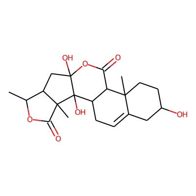 CC1OC(=O)C2(C)C1CC1(O)OC(=O)C3C(CC=C4CC(O)CCC43C)C12O| HBA: | 7 | RingCount: | 5 |