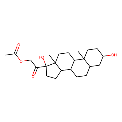 CC(=O)OCC(=O)C1(O)CCC2C3CCC4CC(O)CCC4(C)C3CCC21C| HBA: | 5 | RingCount: | 4 |