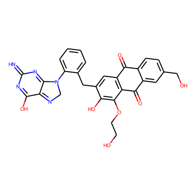 N=C1N=C(O)C2=NCN(c3ccccc3Cc3cc4c(c(OCCO)c3O)C(=O)c3cc(CO)ccc3C4=O)C2=N1| HBA: | 12 | RingCount: | 6 |