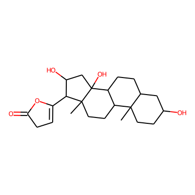 CC12CCC(O)CC1CCC1C2CCC2(C)C(C3=CCC(=O)O3)C(O)CC12O| HBA: | 5 | RingCount: | 5 |