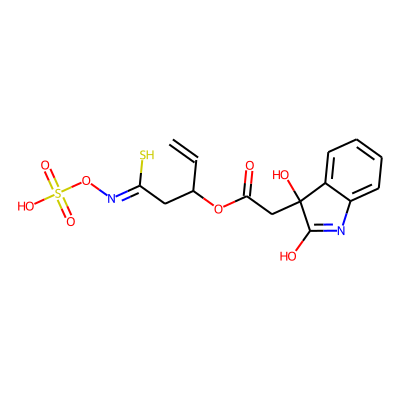 C=CC(CC(S)=NOS(=O)(=O)O)OC(=O)CC1(O)C(O)=Nc2ccccc21Sugarmoiety: