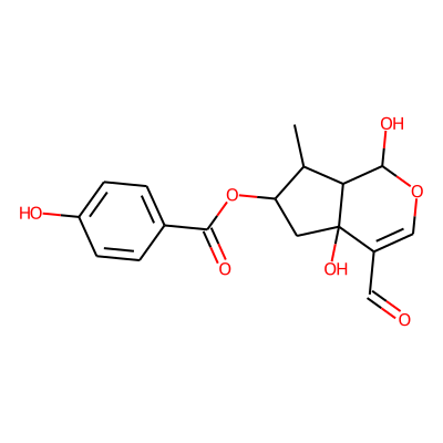 CC1C(OC(=O)c2ccc(O)cc2)CC2(O)C(C=O)=COC(O)C12Sugarmoiety: