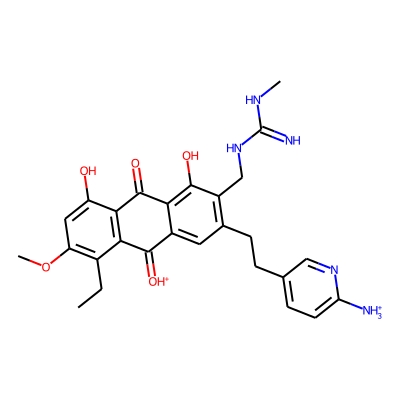 CCc1c(OC)cc(O)c2c1C(=[OH+])c1cc(CCc3ccc([NH3+])nc3)c(CNC(=N)NC)c(O)c1C2=O| HBA: | 10 | RingCount: | 4 |
