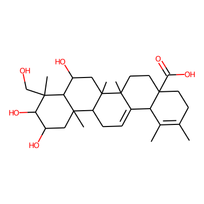 CC1=C(C)C2C3=CCC4C5(C)CC(O)C(O)C(C)(CO)C5C(O)CC4(C)C3(C)CCC2(C(=O)O)CC1| HBA: | 6 | RingCount: | 5 |