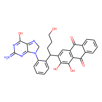 [NH2+]=C1N=C(O)C2=NCN(c3ccccc3C(CCCO)c3cc4c(c(O)c3O)C(=O)c3ccccc3C4=O)C2=N1| HBA: | 11 | RingCount: | 6 |