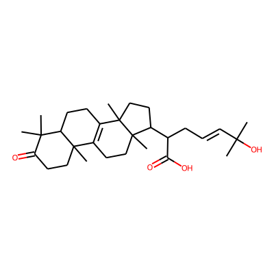 CC(C)(O)C=CCC(C(=O)O)C1CCC2(C)C3=C(CCC12C)C1(C)CCC(=O)C(C)(C)C1CC3| HBA: | 4 | RingCount: | 4 |