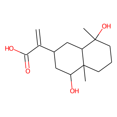 C=C(C(=O)O)C1CC(O)C2(C)CCCC(C)(O)C2C1| HBA: | 4 | RingCount: | 2 |