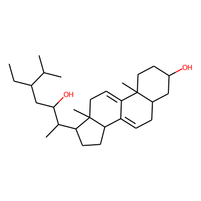 CCC(CC(O)C(C)C1CCC2C3=CCC4CC(O)CCC4(C)C3=CCC21C)C(C)C| HBA: | 2 | RingCount: | 4 |