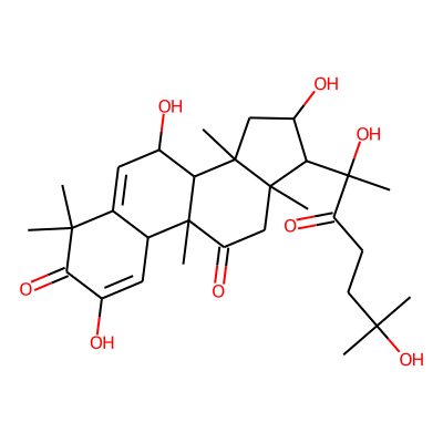 CC(C)(O)CCC(=O)C(C)(O)C1C(O)CC2(C)C3C(O)C=C4C(C=C(O)C(=O)C4(C)C)C3(C)C(=O)CC12C| HBA: | 8 | RingCount: | 4 |
