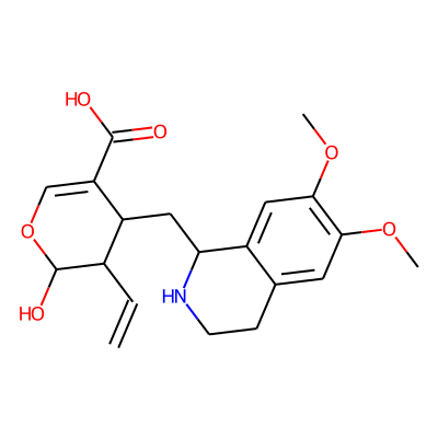 C=CC1C(O)OC=C(C(=O)O)C1CC1NCCc2cc(OC)c(OC)cc21| HBA: | 7 | RingCount: | 3 |