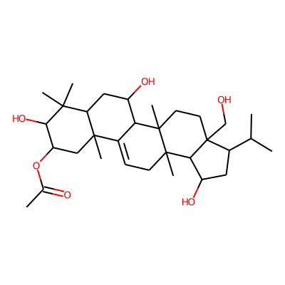 CC(=O)OC1CC2(C)C3=CCC4(C)C5C(O)CC(C(C)C)C5(CO)CCC4(C)C3C(O)CC2C(C)(C)C1O| HBA: | 6 | RingCount: | 5 |