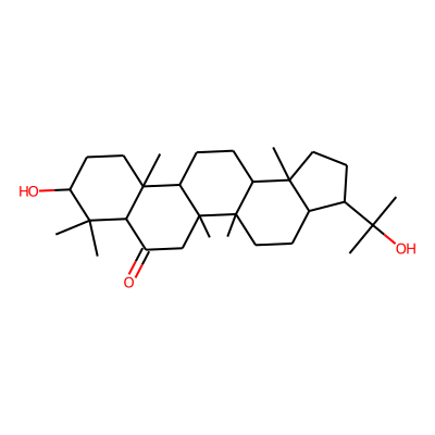 CC(C)(O)C1CCC2(C)C1CCC1(C)C2CCC2C3(C)CCC(O)C(C)(C)C3C(=O)CC21C| HBA: | 3 | RingCount: | 5 |