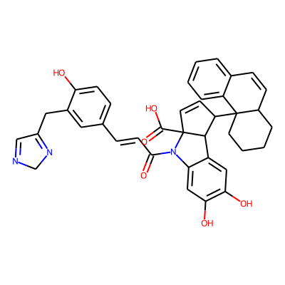 O=C(C=Cc1ccc(O)c(CC2=NCN=C2)c1)N1c2cc(O)c(O)cc2C2C(C34CCCCC3C=Cc3ccccc34)C=CC21C(=O)O| HBA: | 9 | RingCount: | 8 |