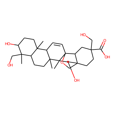 CC1(CO)C(O)CCC2(C)C1CCC1(C)C2C=CC23OCC4(CCC(CO)(C(=O)O)CC42)C(O)CC13C| HBA: | 7 | RingCount: | 6 |