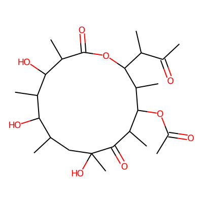 CC(=O)OC1C(C)C(=O)C(C)(O)CC(C)C(O)C(C)C(O)C(C)C(=O)OC(C(C)C(C)=O)C1C| HBA: | 9 | RingCount: | 1 |