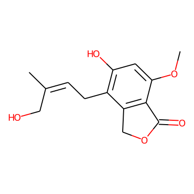COc1cc(O)c(CC=C(C)CO)c2c1C(=O)OC2| HBA: | 5 | RingCount: | 2 |
