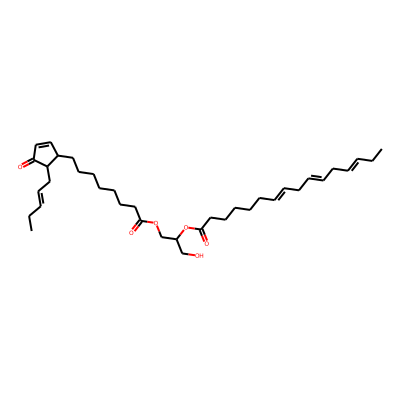 CCC=CCC=CCC=CCCCCCC(=O)OC(CO)COC(=O)CCCCCCCC1C=CC(=O)C1CC=CCC| HBA: | 6 | RingCount: | 1 |