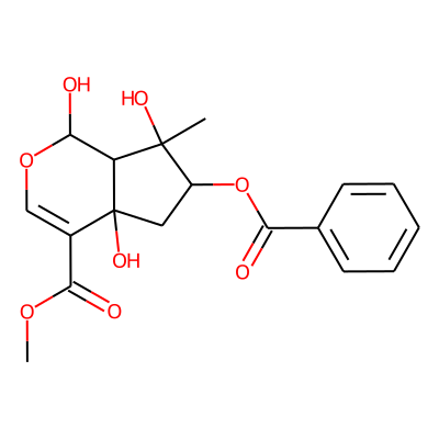 COC(=O)C1=COC(O)C2C1(O)CC(OC(=O)c1ccccc1)C2(C)O| HBA: | 8 | RingCount: | 3 |