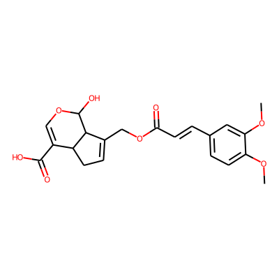 COc1ccc(C=CC(=O)OCC2=CCC3C(C(=O)O)=COC(O)C23)cc1OC| HBA: | 8 | RingCount: | 3 |