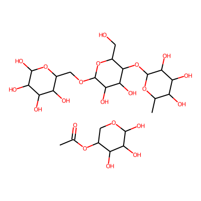CC(=O)OC1COC(O)C(O)C1O.CC1OC(OC2C(CO)OC(OCC3OC(O)C(O)C(O)C3O)C(O)C2O)C(O)C(O)C1O