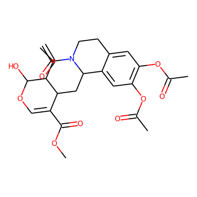 C=CC1C(O)OC=C(C(=O)OC)C1CC1c2cc(OC(C)=O)c(OC(C)=O)cc2CCN1C(C)=O| HBA: | 10 | RingCount: | 3 |