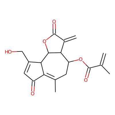 C=C(C)C(=O)OC1CC(C)=C2C(=O)C=C(CO)C2C2OC(=O)C(=C)C12| HBA: | 6 | RingCount: | 3 |