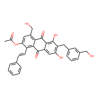 CC(=O)Oc1cc(CO)c2c(c1C=Cc1ccccc1)C(=O)c1cc(O)c(Cc3cccc(CO)c3)c(O)c1C2=O| HBA: | 8 | RingCount: | 5 |