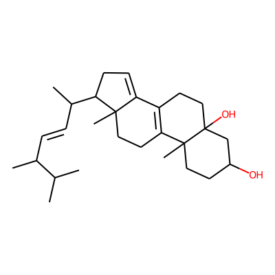 CC(C)C(C)C=CC(C)C1CC=C2C3=C(CCC21C)C1(C)CCC(O)CC1(O)CC3| HBA: | 2 | RingCount: | 4 |
