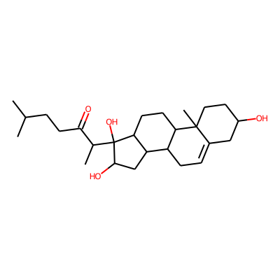 CC(C)CCC(=O)C(C)C1(O)C(O)CC2C3CC=C4CC(O)CCC4(C)C3CCC21| HBA: | 4 | RingCount: | 4 |