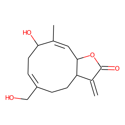 C=C1C(=O)OC2C=C(C)C(O)CC=C(CO)CCC12| HBA: | 4 | RingCount: | 2 |