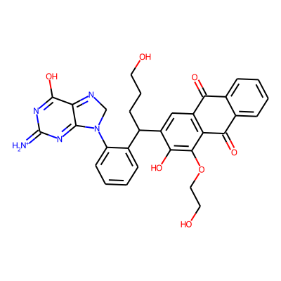 [NH2+]=C1N=C(O)C2=NCN(c3ccccc3C(CCCO)c3cc4c(c(OCCO)c3O)C(=O)c3ccccc3C4=O)C2=N1| HBA: | 12 | RingCount: | 6 |