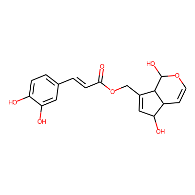 O=C(C=Cc1ccc(O)c(O)c1)OCC1=CC(O)C2C=COC(O)C12Sugarmoiety: