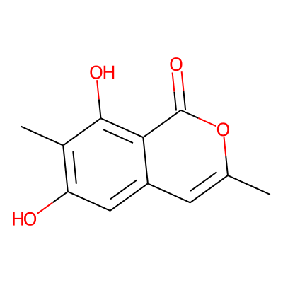 Cc1cc2cc(O)c(C)c(O)c2c(=O)o1| HBA: | 4 | RingCount: | 2 |