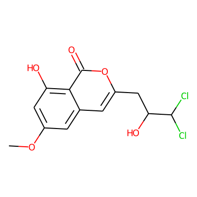 COc1cc(O)c2c(=O)oc(CC(O)C(Cl)Cl)cc2c1Sugarmoiety: