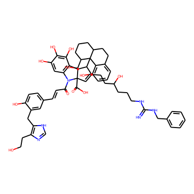 N=C(NCCCC(O)CCC1=CC2(C(=O)O)C(c3c(cc(O)c(O)c3O)N2C(=O)C=Cc2ccc(O)c(Cc3[nH]cnc3CCO)c2)C1C12c3c(O)cccc3CCC1CCCC2CO)NCc1ccccc1