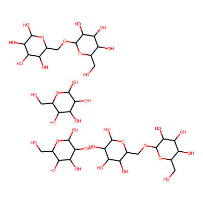 OCC1OC(O)C(O)C(O)C1O.OCC1OC(O)C(O)C(O)C1O.OCC1OC(OCC2OC(O)C(O)C(O)C2O)C(O)C(O)C1O.OCC1OC(OCC2OC(O)C(O)C(O)C2O)C(O)C(O)C1O
