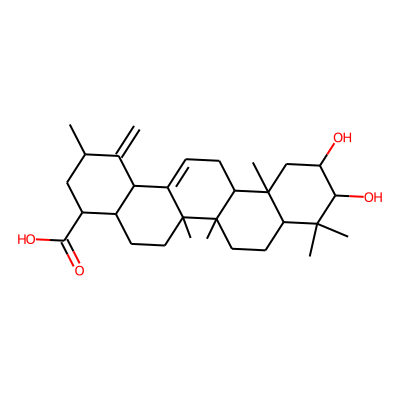 C=C1C(C)CC(C(=O)O)C2CCC3(C)C(=CCC4C5(C)CC(O)C(O)C(C)(C)C5CCC43C)C12| HBA: | 4 | RingCount: | 5 |
