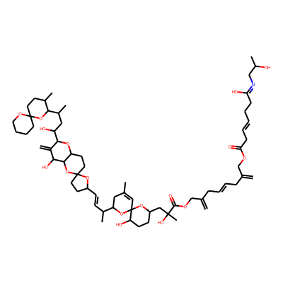 C=C(CC=CCC(=C)COC(=O)C(C)(O)CC1CCC(O)C2(C=C(C)CC(C(C)C=CC3CCC4(CCC5OC(C(O)CC(C)C6OC7(CCCCO7)CCC6C)C(=C)C(O)C5O4)O3)O2)O1)COC(=O)CC=CCCC(O)=NCC(C)O| HBA: | 18 | RingCount: | 7 |