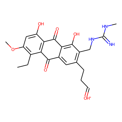 CCc1c(OC)cc(O)c2c1C(=O)c1cc(CCC=[OH+])c(CNC(=N)NC)c(O)c1C2=O| HBA: | 9 | RingCount: | 3 |
