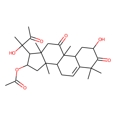 CC(=O)OC1CC2(C)C3CC=C4C(CC(O)C(=O)C4(C)C)C3(C)C(=O)CC2(C)C1C(C)(O)C(C)=O| HBA: | 7 | RingCount: | 4 |